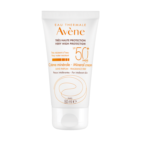 La Crème minérale SPF 50+ offre une très haute protection solaire aux peaux intolérantes aux filtres chimiques et aux parfums, ainsi qu'aux peaux fragiles des adultes et des enfants. Appliquée sur le visage, sa formule à la texture riche et onctueuse hydrate et protège la peau. La Crème minérale SPF 50+ est composée :- D'un filtre minéral pour une très large protection UVB-UVA stable assurant une tolérance cutanée optimale. - De la Provitamine E (Pré-tocophéryl), puissant antioxydant, pour une protection des cellules des radicaux libres.- D'Eau thermale d'Avène, reconnue pour ses propriétés apaisantes, anti-irritantes et adoucissantes.Pour toute la famille (adultes & enfants).